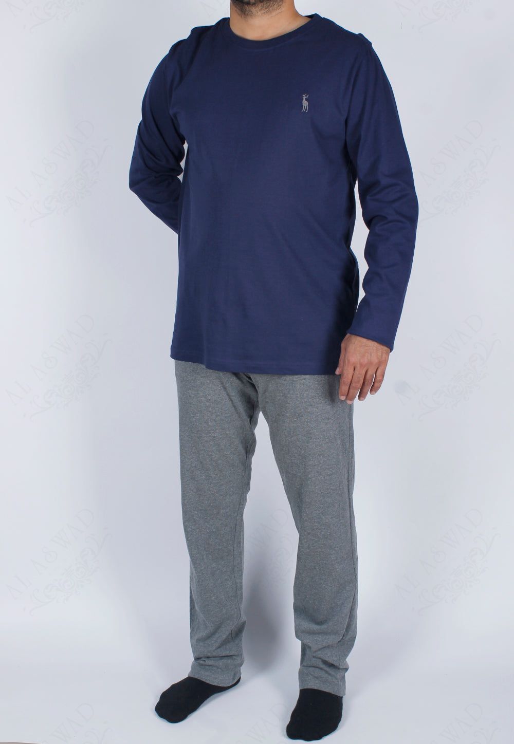 بيجامة ريجالي للنوم من برقاني متوفرة باكمام طويلة قطن 60% بوليستر 40% وبنطلون قطن 100% واسع و مريح للنوم