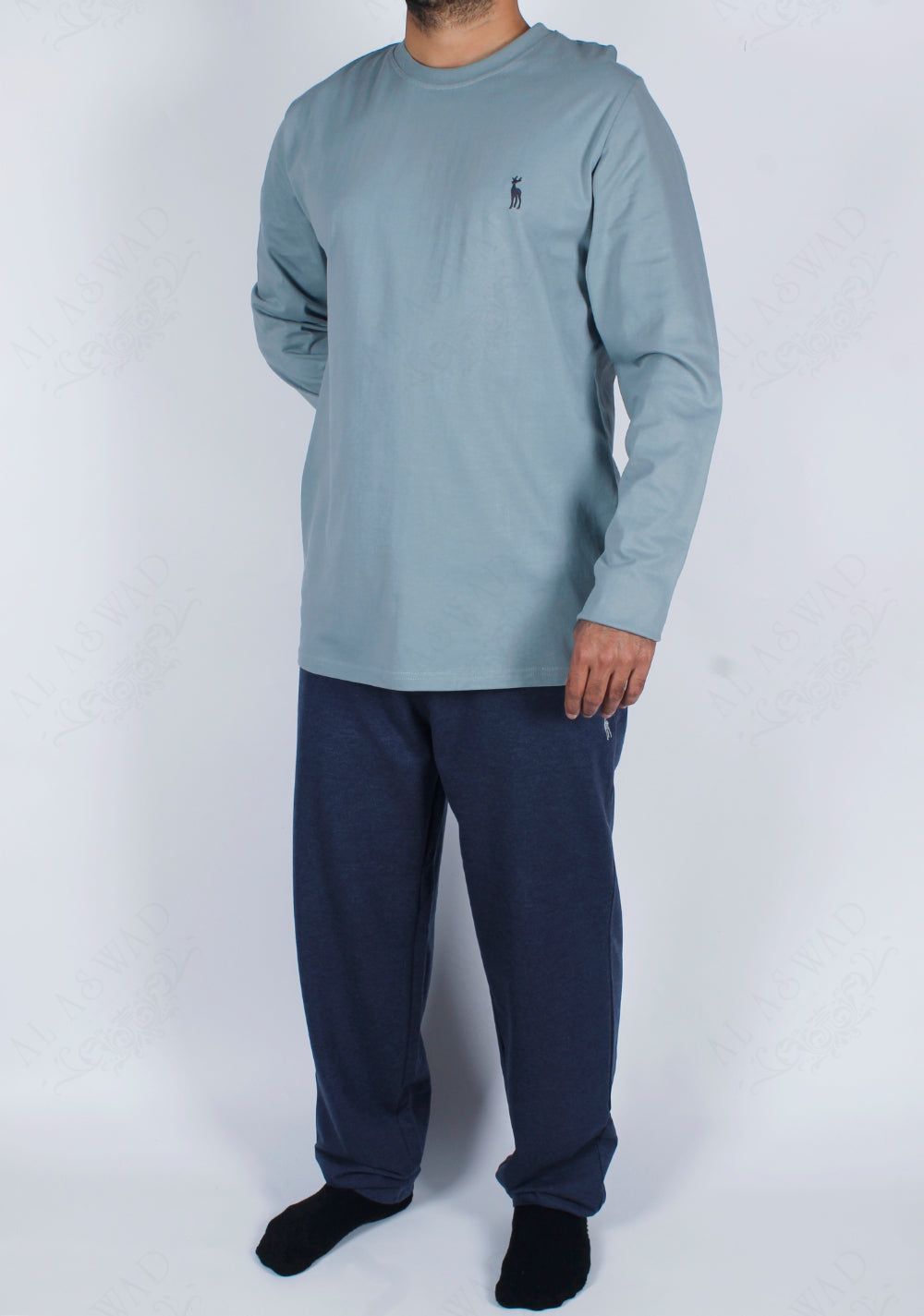 بيجامة ريجالي للنوم من برقاني متوفرة باكمام طويلة قطن 60% بوليستر 40% وبنطلون قطن 100% واسع و مريح للنوم
