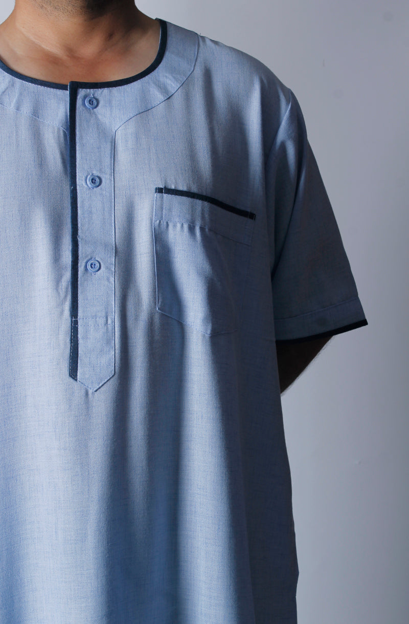 تتميز الدشداشة المنزله التقليدية بأكمام قصيرة مع بجيب أمامي جانبي