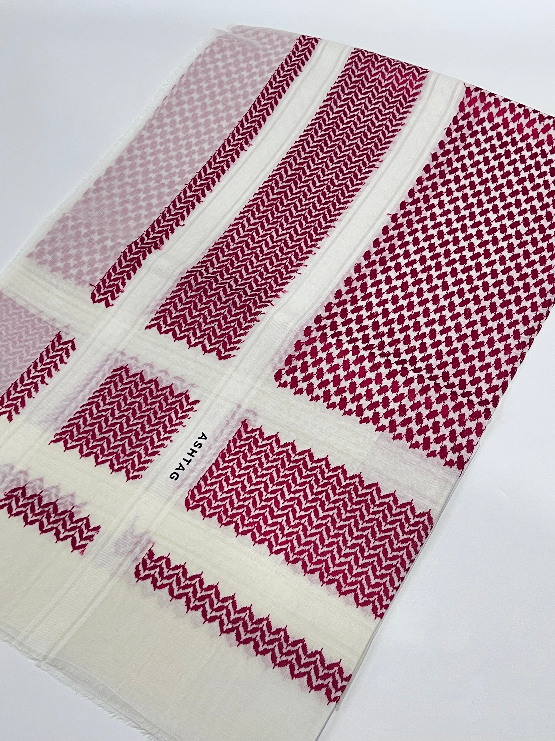 شال صوف بنقشة الشماغ، يتميز بتصميم يجمع بين الأصالة والحداثة، مستوحى من التراث العربي التقليدي. يضفي عليه دفئًا وملمسًا ناعمًا، مما يجعله مثاليًا لأيام الشتاء الباردة. نقشة الشماغ الكلاسيكية تعطيه طابعًا فريدًا وراقيًا، وتتناسب مع مختلف الإطلالات سواء كانت رسمية أو كاجوال