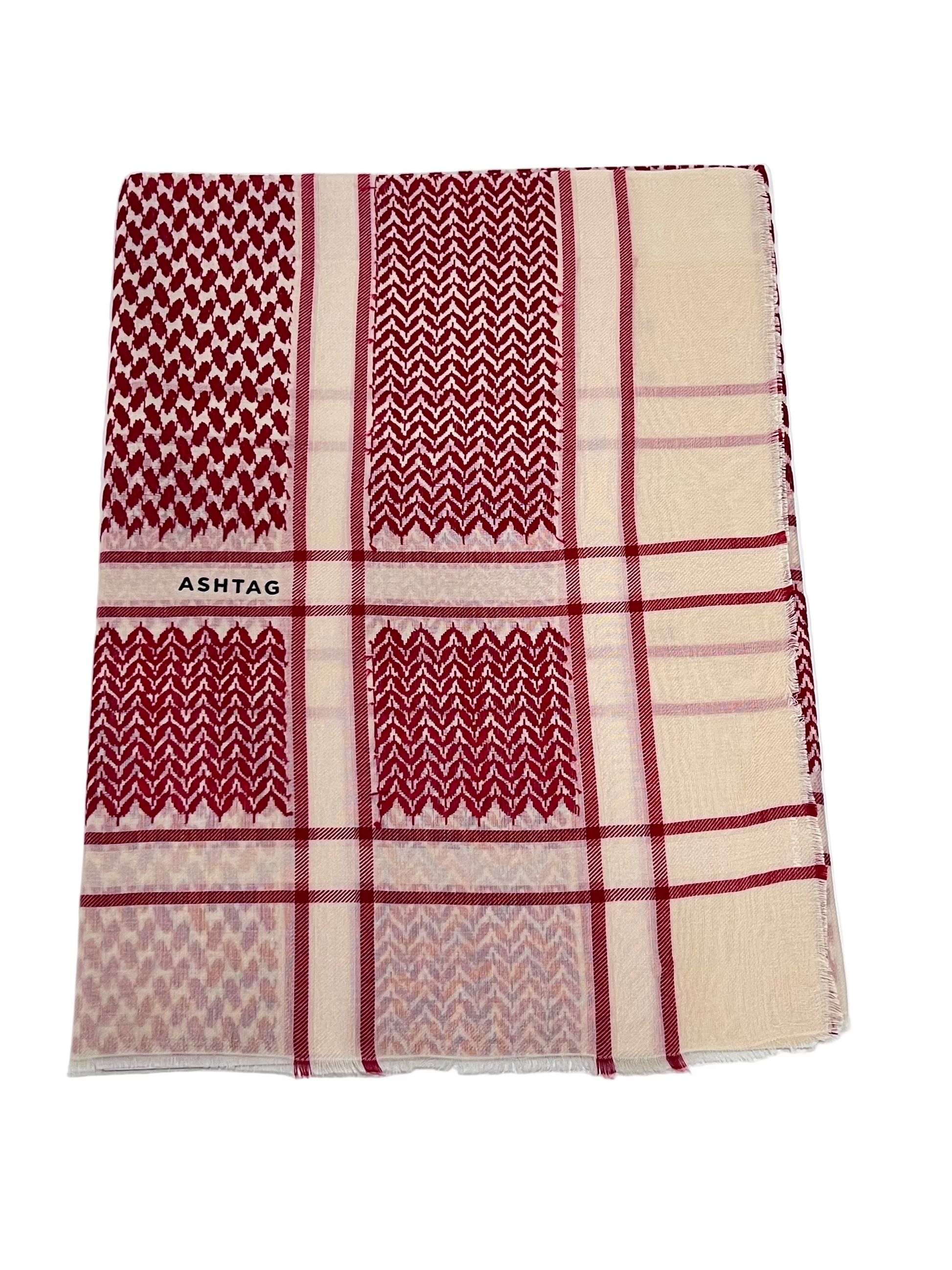 شال ثقييل مصنوع من القطن الفاخر يأتي باللون السكري مع نقشة حمراء مستوحاة من التراث العربي. يتميز هذا الشال بنعومة ملمسه مما يجعله مريحًا للارتداء اليومي ومناسبًا لمختلف الأجواء. النقشة الحمراء تضفي لمسة تقليدية وأصالة، بينما اللون السكري يضفي مظهرًا هادئًا وأنيقًا