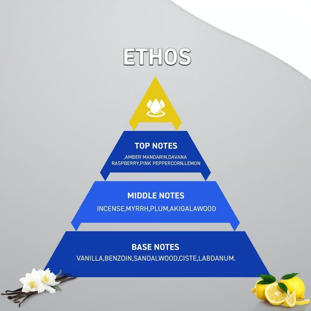 عطر إذوس Ethos 100mL اليوسفي، التوت، الفلفل، البخور، البرقوق، الفانيليا، خشب الصندل